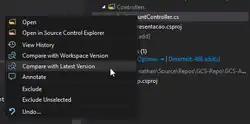 - Clique no arquivo desejado com o botão direito e selecione Compare with Latest Version.