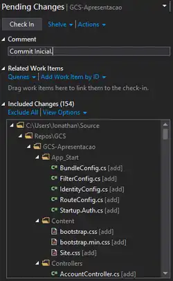 - Informe a mensagem do commit em Comment e selecione Check in.