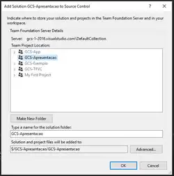 - Clique no projeto com o botão direito e selecione Source Control > Add Solution to Source Control...