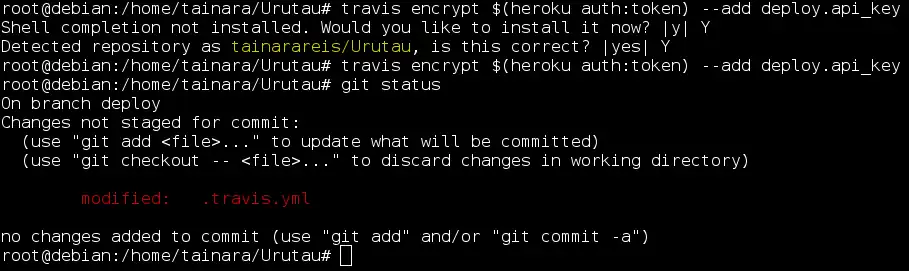 Para usar a configuração padrão, é preciso adicionar uma a chave criptografada do Heroku no arquivo .travis.yml. Abaixo o passo-a-passo: