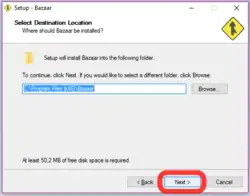 Estão disponíveis no site [1], os guias de instalação da ferramenta Bazaar dentre as quais é possível escolher qual o sistema utilizado e a versão desejada, podendo escolher desde uma versão mais estável à versões beta
