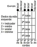 - A nota Sol (392,0Hz) é encontrada na 3ª, na 2ª e na 1ª corda, tornando possível afinar as três cordas com essa mesma nota.