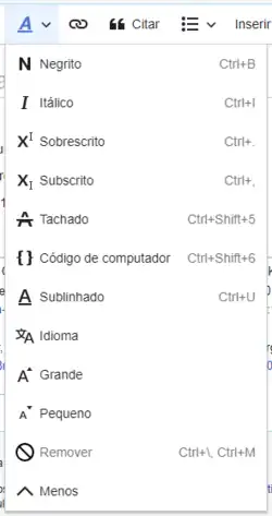 Formatação: Ao pressionar no “A”, um menu suspenso é aberto.