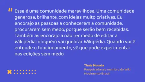 A participação na Wikipédia, e nos demais projetos Wikimedia, é voluntária e a criação de uma conta de usuário o torna parte da comunidade online. Esse "nome de usuário(a)" é a identidade que as pessoas irão reconhecer e com a qual irão se comunicar.