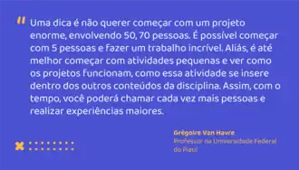 O terceiro passo é a definição das etapas avaliativas da atividade de forma clara. Essa escolha é particular a cada educador e está diretamente relacionada à temática da disciplina ou projeto de extensão. É importante que ambas as partes entendam quais são as expectativas para cada uma das entregas para que não haja desencontros.