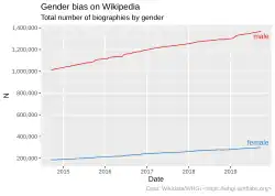 Ainda assim, a comunidade lusófona dos projetos Wikimedia, incluindo os editores da Wikipédia em português, também reflete os padrões internacionais. De acordo com pesquisa realizada em 2022, 65% dos editores lusófonos que responderam ao questionário se reconhecem como sendo do gênero masculino, 27% do gênero feminino e 5% preferiram não informar[7]. Assim como o padrão dos editores, o viés de gênero está muito presente nos verbetes disponíveis em português – o número de biografias de mulheres é infinitamente menor do que as biografias de homens disponíveis, com pessoas pertencentes de outras (consideradas) minorias sociais sendo ainda mais desfavorecidas.