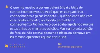 Fazer parte do Movimento Wikimedia é, de certa maneira, realizar uma utopia real. Neste ambiente, não há pré-requisitos para contribuir, não importa quem são as pessoas que contribuem, nem qual a sua formação acadêmica. Todo e qualquer indivíduo que queira participar e doar um pouco da sua sabedoria e contribuir para a soma de todo o conhecimento do mundo é muito bem-vindo(a).A vocação da Wikimedia é de certo modo realizar uma utopia. Aproxima-nos de um mundo em que queremos estar, com engajamento à associação voluntária, prática do consenso informado e relações acolhedoras; está portanto direcionada a uma transformação social, enraizada em fundamentos normativos emancipadores.