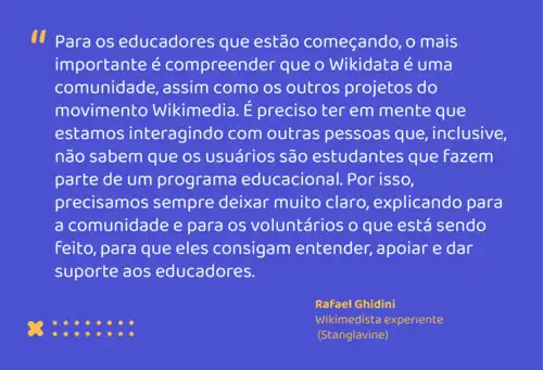 Nesta unidade, apresentamos algumas ideias simples de atividades que podem ser desenvolvidas com os estudantes para você saber como começar a usar o Wikidata no seu projeto de extensão. Também trazemos informações sobre as possibilidades mais usadas pelos educadores mundo afora.