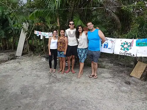 A atividade foi prazerosa e colegas de outros grupos ajudaram na sua elaboração ampliando também a interação entre os próprios estudantes. Ela foi realizada no final de tarde do segundo dia de visita à aldeia e não teve nenhum imprevisto maior, valendo ressaltar que os materiais trazidos pelo grupo seriam escassos se não fossem complementados com materiais trazidos pelo Professor Jorge Machado e pelo grupo de extensão (tintas e papel).